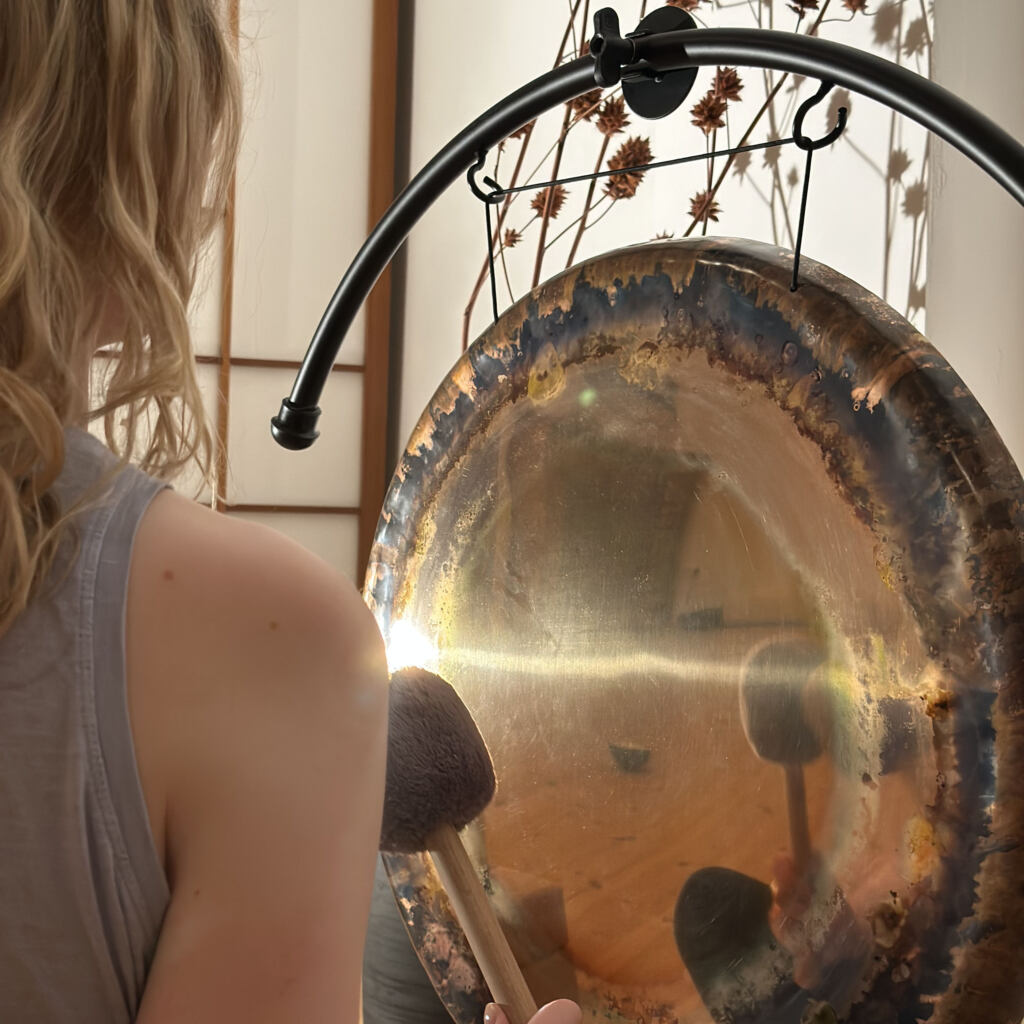 Das Sound Bath findet in einer angenehmen liegenden Position statt. Es ist eine tolle Gelegenheit dem Kopf Leerlauf zu gönnen und Stress vor der Tür zu lassen.